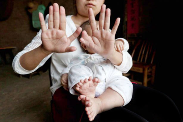 نشر موقع الصيني "بيبولز ديلي أونلاين" صوراً لصبي يدعى هونغ هونغ عمره 3 أشهر، ولديه 15 إصبعاً في يديه و16 إصبعاً في قدميه.