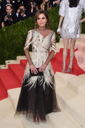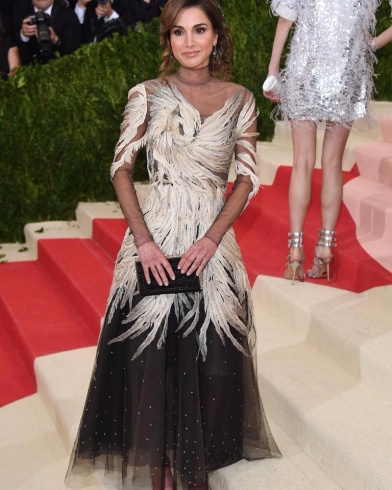 للمرة الأولى وبحضورٍ ملفت ومتألق أطلت الملكة رانيا على السجادة الحمراء لحفل الـ Met Gala السنوي بفستانٍ من مجموعة Valentino لخريف 2016.