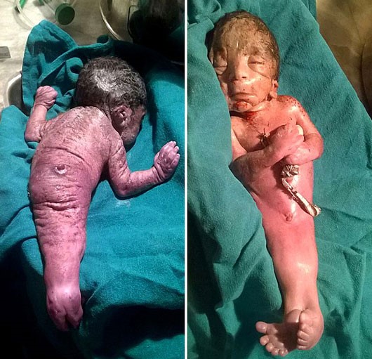 وأوضح الاطباء الذين لم يحدّدوا جنس المولود حتى الأن، أن الجزء العلوي من الجسم كان مكتمل النمو، ولكن الجزء السفلي كان ناقصاً.