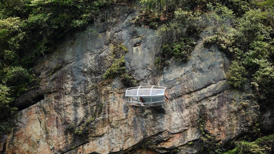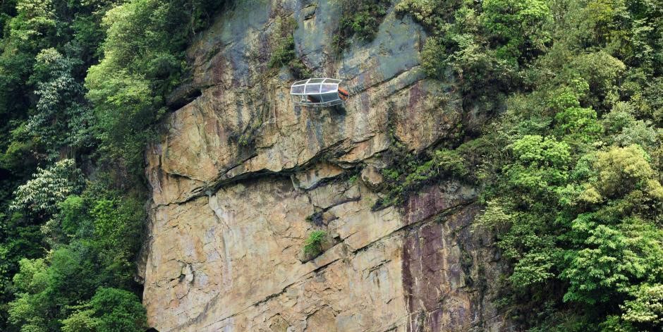 لم يستطع أحد من السياح الذين زاروا منطقة تشانغجياجيه السياحية الموجودة في الصين إخفاء انبهارهم عندما رأوا غرفة زجاجية معلقة على هاوية مرتفعة للغاية بجانب بحيرة باوفنغ.