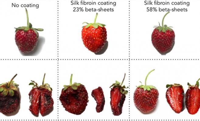 وقارن الباحثون بين الفراولة المحفوظة بخيوط الحرير والأخرى المجمدة مع مرور الوقت لمدة سبعة أيام، ووجد الباحثون أن الفراولة المغلفة بالحرير لا تزال نضرة وجيدة، فى حين الفراولة الأخرى المجففة أو المجمدة تغير لونها، ويرجع ذلك إلى إبطاء تنفس الفاكهة وبالتالى منع البكتيريا والميكروبات.