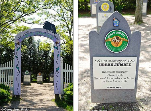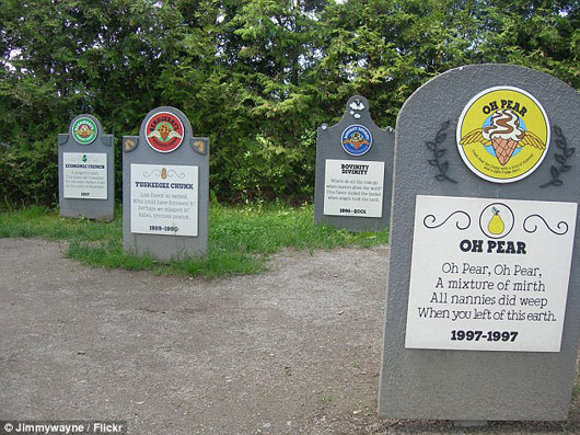 في ولاية Vermont الأمريكية، هناك مصنع مخصص لبيع الآيس كريم يدعى “Ben and Jerry” وقد أوجد مقبرة تخيلية يقوم فيها بوضع شواهد الموتى والتي يكتب عليها أسماء نكهات الآيس كريم.