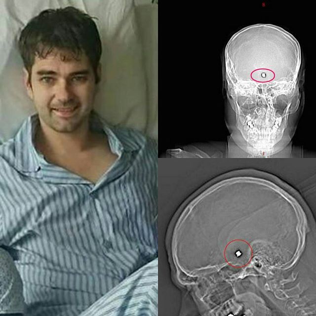 نجاة بريطاني بأعجوبة بعد أن أطلقت عليه النار في الرأس ويعيش الآن بقنبلة موقوتة بعد أن بقيت رصاصة مغروزة في دماغه.