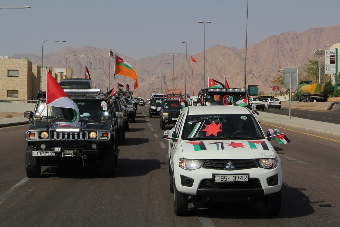 ضمن احتفالات المملكة بالأعياد الوطنية الخالدة وبرعاية مدير عام الدفاع المدني الفريق الركن طلال الكوفحي نظم نادي الدفع الرباعي الأردني وبالتنسيق مع المديرية العامة للدفاع المدني أطول مسيرة وطنية كرنفالية لآليات الدفع الرباعي الأردني المعدلة وعددها (50) آلية مزينة بعلم الأردن والثورة العربية الكبرى والتي انطلقت صباح يوم الخميس الماضي من المديرية العامة للدفاع المدني بالعاصمة عمان مروراً بمحافظات الكرك والطفيلة ومعان وانتهاءً بمحافظة العقبة .