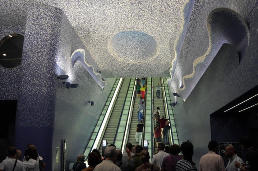 نابولي مدينة جميلة جداً، ومحطات المترو فيها أشبه بمعارض فنية رائعة. فقد زينت 14 محطة مترو فيها بأعمال فنية أنجزها أكثر من مائة مهندس معماري وفنان، ولعل أجملها محطة توليدو التي تضم أعمالاً فسيفسائية.