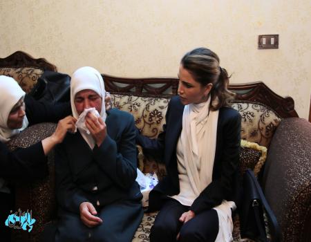 زارت جلالة الملكة رانيا العبدالله اليوم الثلاثاء ديواني عشيرتي الحيارات والعواملة في السلط لتقديم واجب العزاء بالشهيدين عّمر الحياري ومحمود العواملة اللذين استشهدا في العملية الإرهابية التي وقعت صباح الاثنين على مكتب المخابرات العامة في البقعة وادت الى استشهاد خمسة افراد اثناء اداء واجبهم الرسمي .