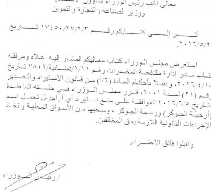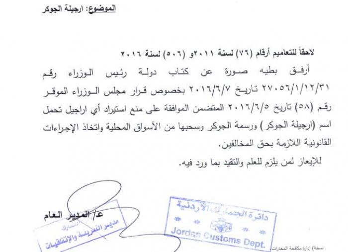 قررت الحكومة منع استيراد ما سميت بـ'ارجيلة الجوكر' ومنع تداولها نهائيا.