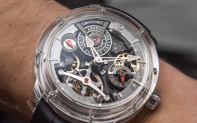 وأطلقت شركة «Greubel Forsey» اسم «قمة الشفافية» على ساعتها الجديدة المصنوعة يدويا، إذ يمكن رؤية كافة مكونات الساعة الداخلية التي يبلغ عددها 396 قطعة وهي في معصمك، إضافة إلى حركة كل جزء منها من خلال الهيكل الشفاف الخارجي للساعة.