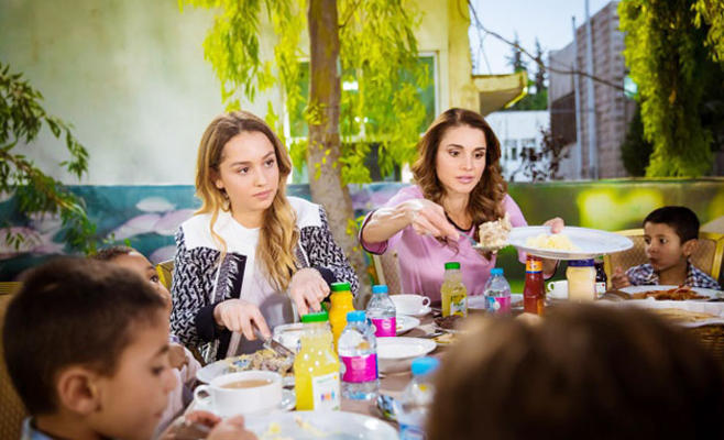 ولأن الأيتام دائماً لهم حصة في جدول الملكة رانيا قامت جلالتها وترافقها الأميرة إيمان بتفقد أحوال الأيتام المقيمين في مؤسسة الحسين الاجتماعية في منطقة الأشرفية، حيث شاركتهم جلالتها وجبة الإفطار، وتبادلت الأحاديث معهم واطمأنت عليهم.