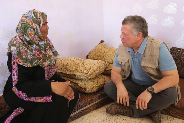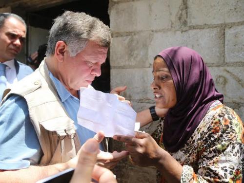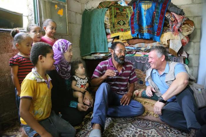 يقوم جلالة الملك عبدالله الثاني في الاثناء بزيار اسرة فقيرة في دير علا .