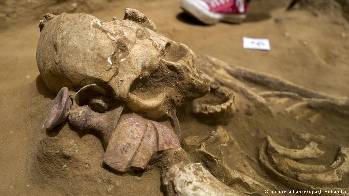 كما دُفن آخرون وهم يرتدون الحلي، وآخرون ومعهم أسلحة.