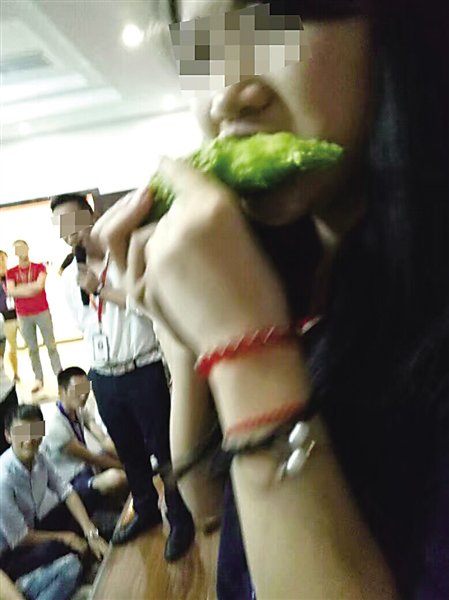 شركة Leshang Decorations ومقرها في تشونغتشينغ، أجبرت الموظفين على تناول القرع المر بينما يُراقبهم زملاء عملهم بسبب تقصيرهم في أداءهم الأسبوعي. وإن تجرأ أحد من المعاقَبين على بصق الطعام أثناء تناوله، فإنه يضطر إلى تناول المزيد منه.