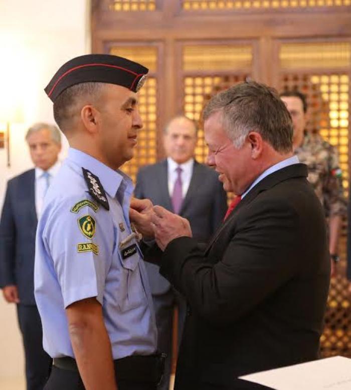 · جلالة الملك عبدالله الثاني، القائد الأعلى للقوات المسلحة، ينعم على الرقيب أحمد العدوان بوسام الشجاعة والإنقاذ من الدرجة الثانية.