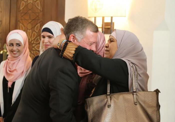 جلالة الملك عبدالله الثاني، القائد الأعلى للقوات المسلحة، يستقبل النقيب فيصل العدوان والرقيب أحمد العدوان، في قصر الحسينية.