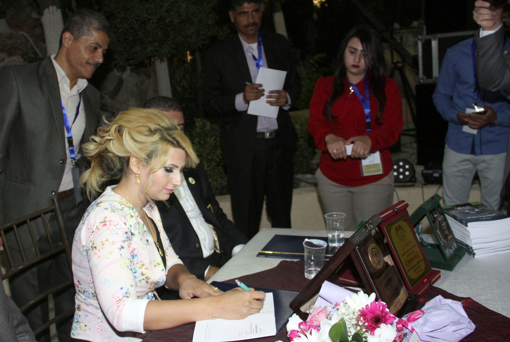وتخلل الحفل عرضا تقديميا عن الكاتبة قدمه فريق عمل المؤسسة الاعلامية التي تعمل فيها "مجموعة أورينت الاعلامية" وتقرير مصور عن بطل الرواية ابو داود قدمته محطة رؤيا الفضائية.