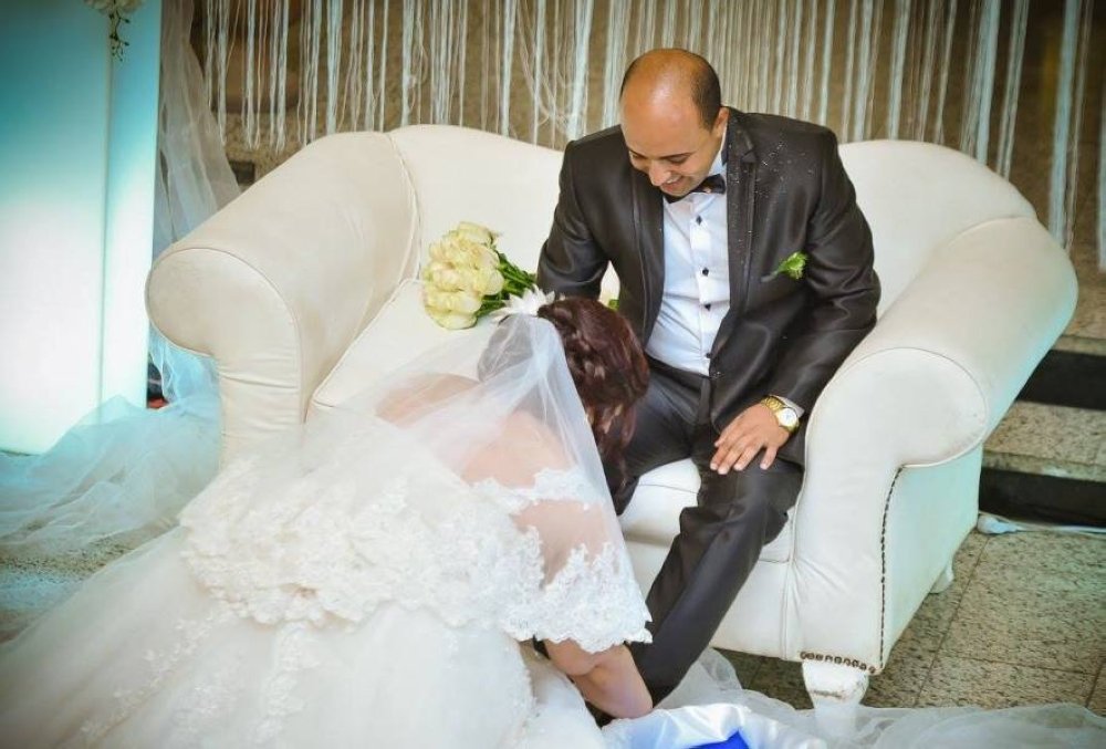 أقدمت العروس المصرية مارينا على غسل قدمي زوجها، وهي بثوب الزفاف، في صورة، أثارت ردود فعل كبيرة على شبكات التواصل الاجتماعي، بين مؤيد ومعارض.