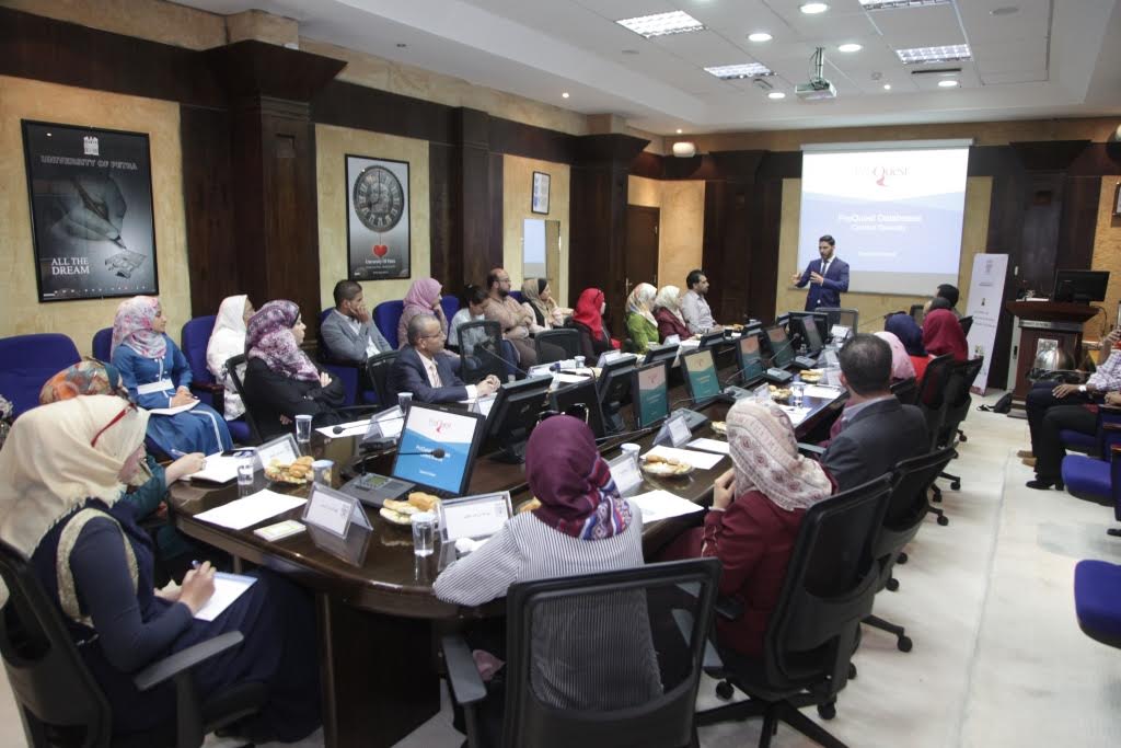 استضافت جامعة البترا ورشة عمل حول قواعد البيانات لمكتبات الجامعات الأردنية الحكومية والخاصة، بالتعاون مع شركة بروكست.