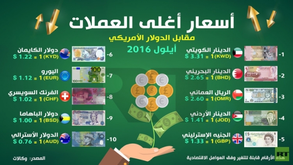 احتل الدينار الاردني المرتبة الرابعة بأغلى اسعار العملات في العالم مقابل الدولار الأميركي ، بحسب انفوجرافيك نشرته قناة روسيا اليوم .