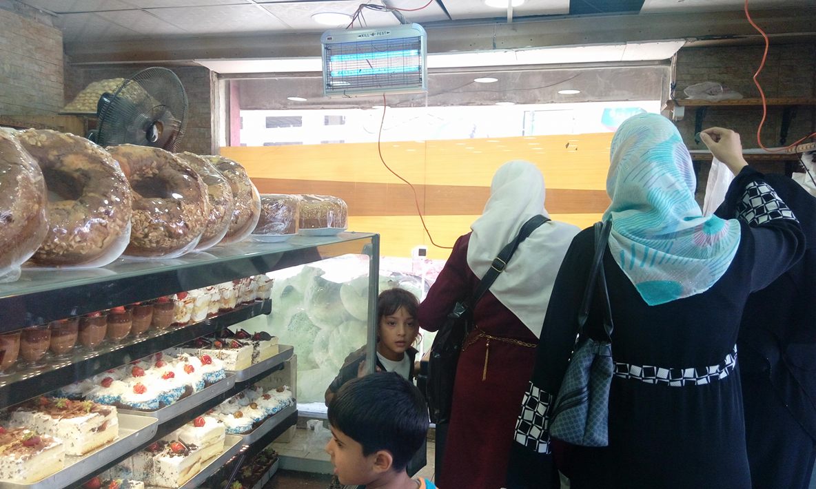 وعلى خلاف مع التذبذب الذي تشهده الإلبسة والأحذية فإن المخابزتشهد إقبالا مكثفا ومؤكدا من قبل أفراد الجمهور، ويقول أحمد موظف مبيعات في أحد المخابز، تزداد الحركة بشكل كبير جدا عشية ليلة العيد، وهناك إقبال لشراء الخبزوبعض أنواع من الحلويات.