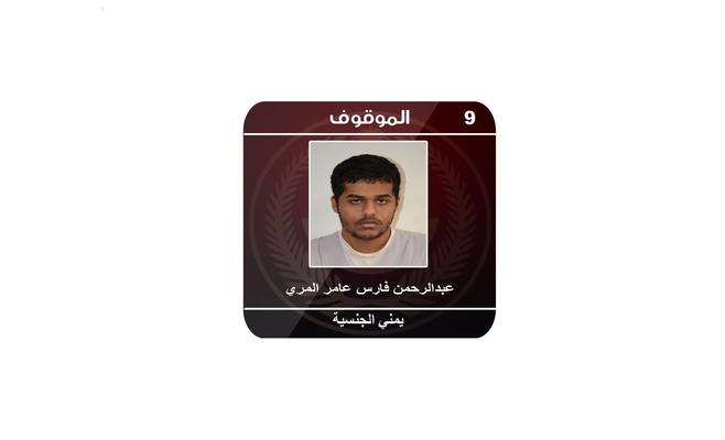 9. عبد الرحمن فارس عامر المري"يمني الجنسية"