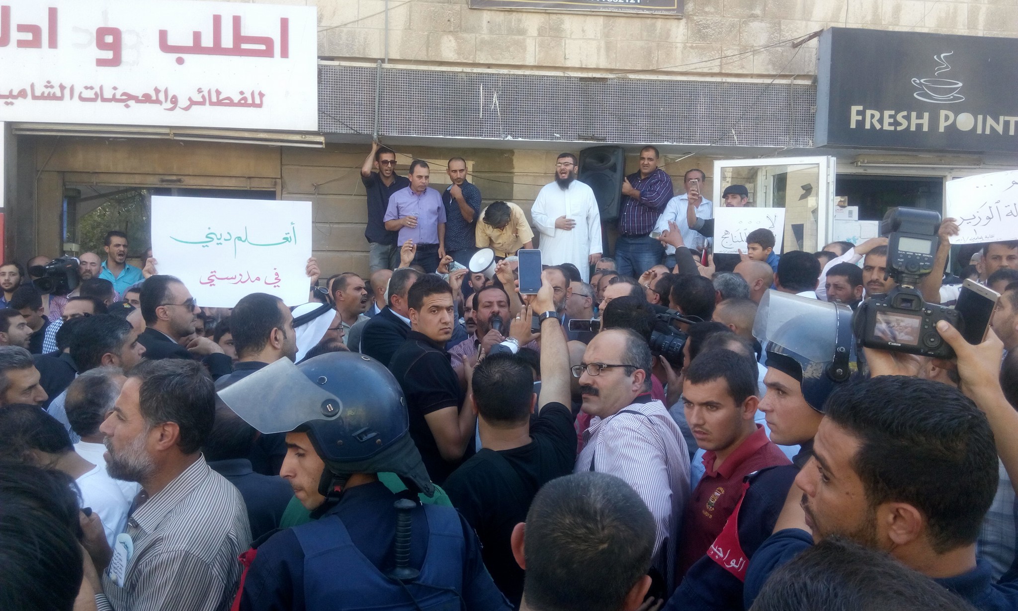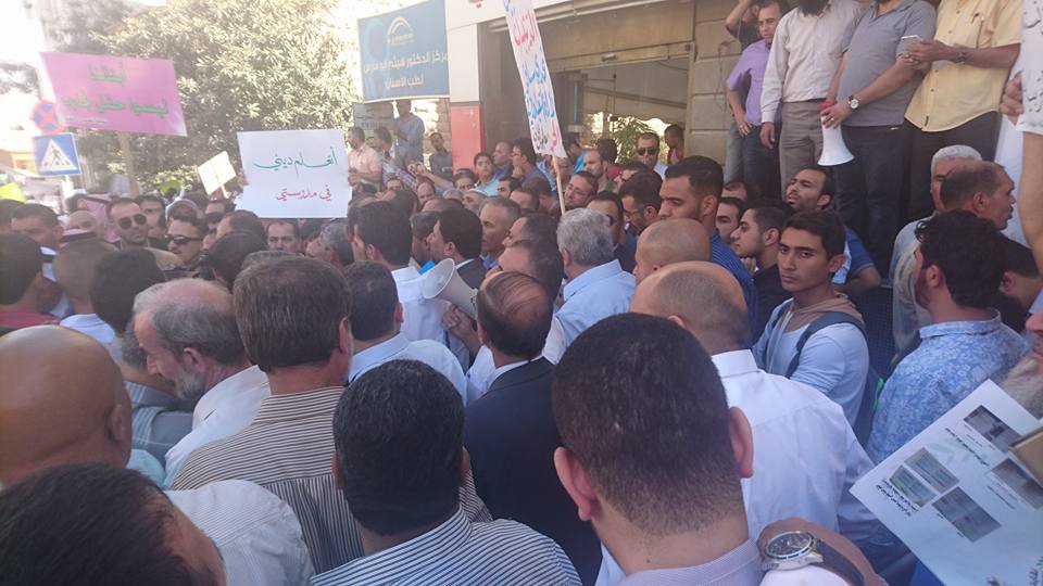 نفذ المئات من المعلمين اعتصاما مفتوحا اليوم الخميس امام مبنى وزارة التربية والتعليم في العبدلي ، احتجاجا على تغيير المناهج الدراسية التي قامت بها الوزارة مؤخرا .