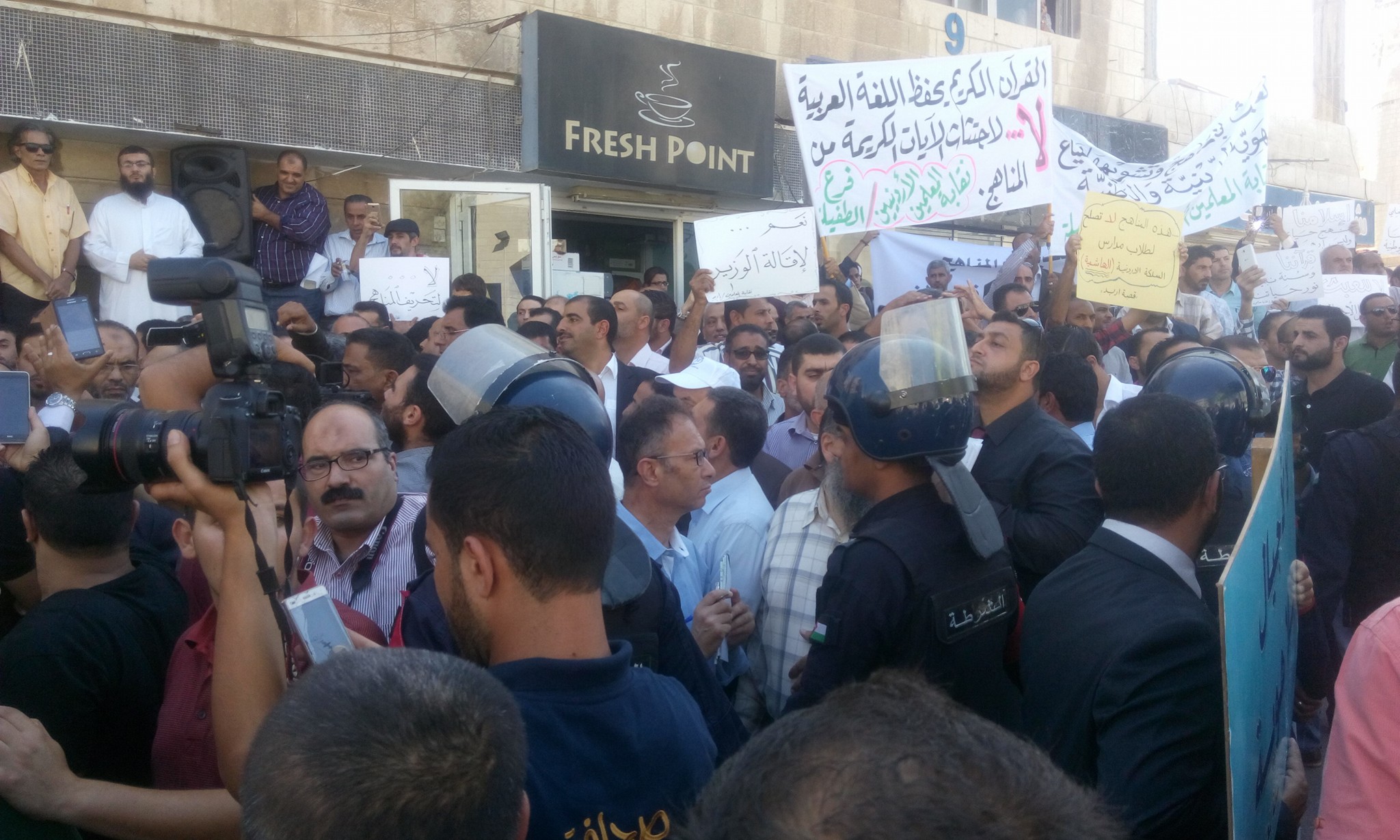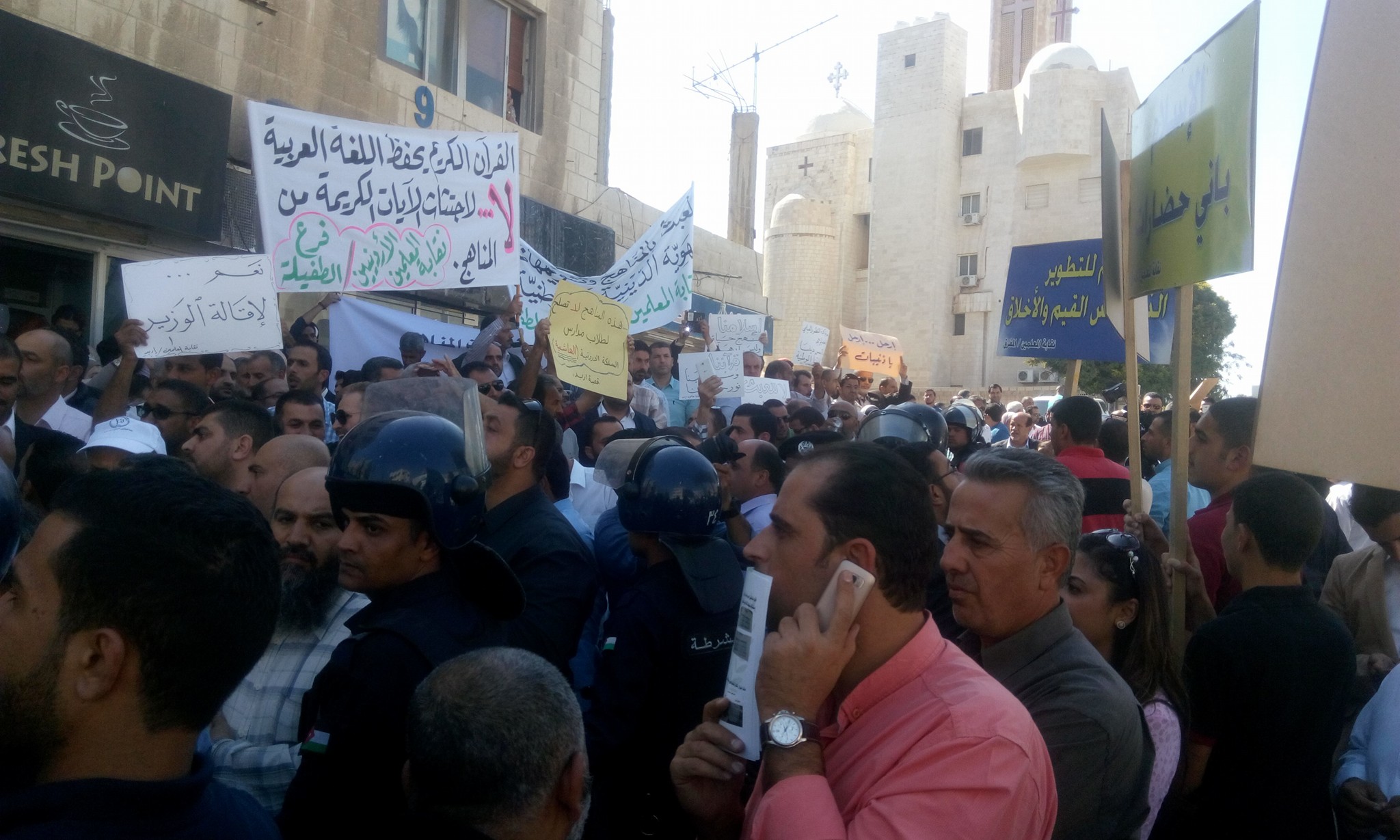 ورفع المشاركين شعارات تطالب باقالة وزير التربية والتعليم الدكتور محمد الذنيبات واخرى ايضا كانت كالتالي ( لا لتحريف المناهج ، هذه المناهج لا تصلح لطلاب مدارس المملكة الاردنية الهاشمية) .