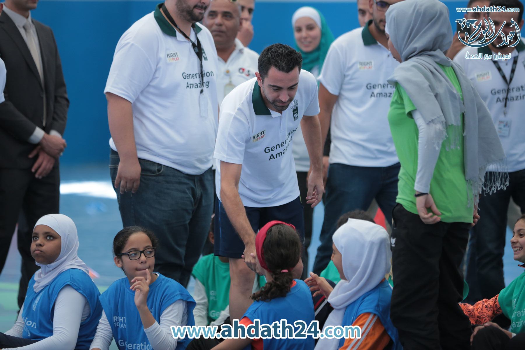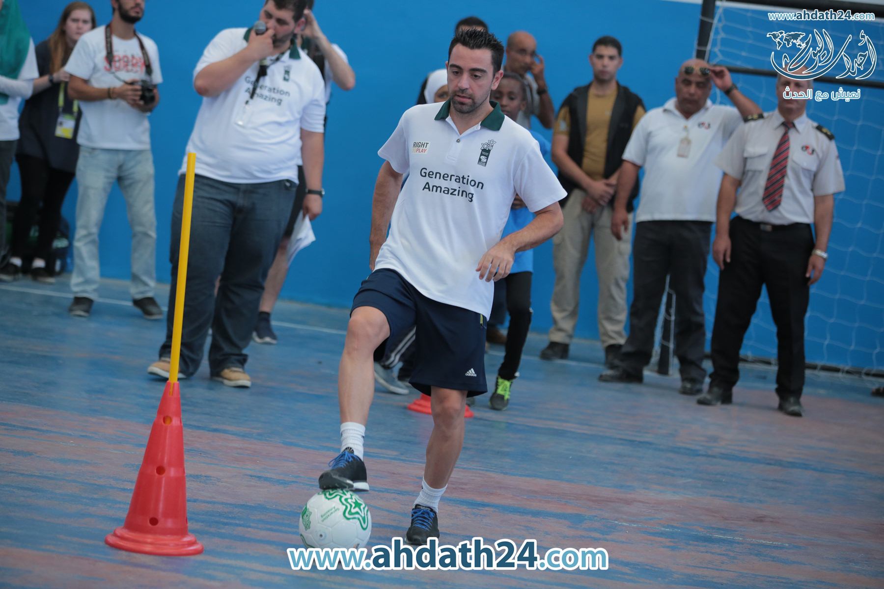 وتبادل تشافي نقل الكرة مع الأطفال، وقال "أنا موجود هنا لأني أحب أن أساعد الناس، تعلمت في الحياة أنه عندما تسنح الفرصة يجب علينا التقاطها".