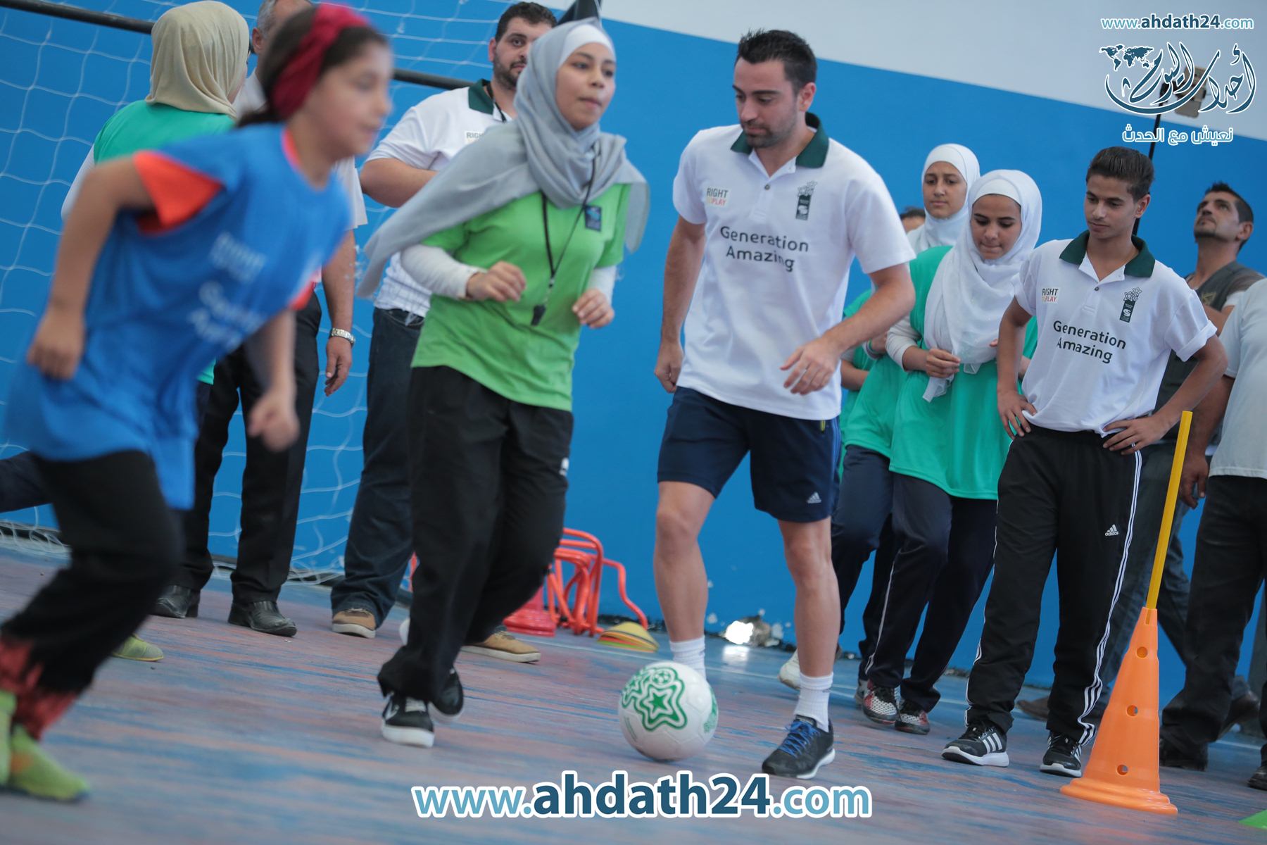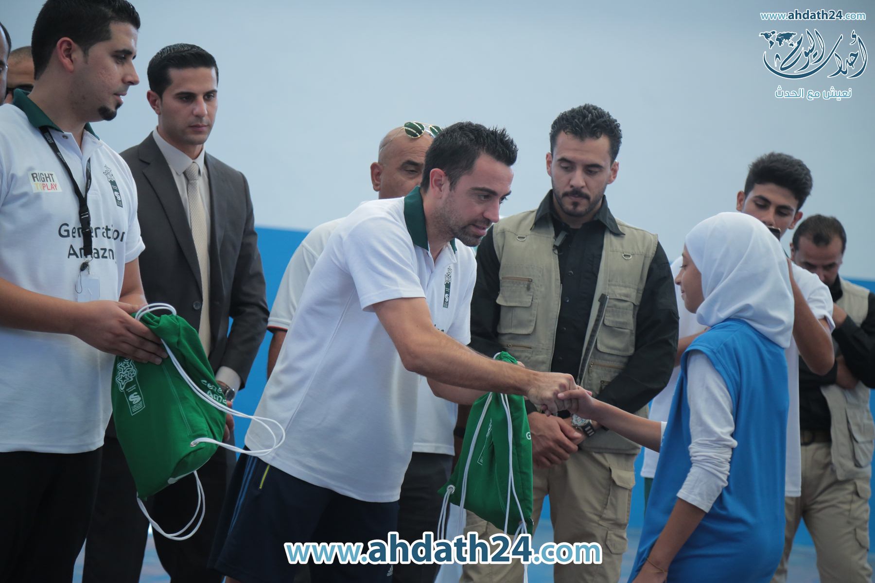 والتقى تشافي نجم المنتخب الإسباني السابق والذي يدافع عن ألوان السد القطري منذ 2015، مع بعض اللاجئين الشباب في المخيم الذي أنشىء عام 1968 إلى الشمال من عمان وأصبح اليوم مدينة تعرف باسم البقعة.