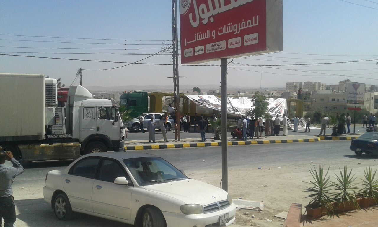 وينظيم مجموعة من اصحاب الشاحنات الاردنية (برادات وتريلات وناقلات ) اعتصام سلمي للمطالبة بحقوق الشحن الاردني وذلك بالوقوف بشكل طولي على شارع البتراء في محافظة اربد بالقرب من مستشفى الملك عبدالله وعلى جانبي الطريق وبدون اعاقة للمرور وعدم اغلاق الشارع للقادمين من الرمثا او عمان والعكس وذلك اعتبارا من صباح يوم غد الاربعاء الساعة السابعة صباح ولاشعار اخر حتى الحصول على مطالب الشحن .