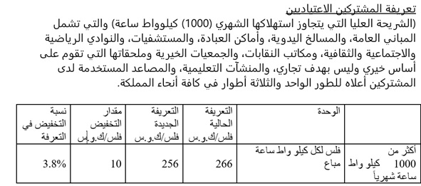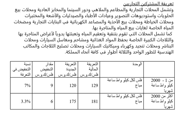 قرر مجلس مفوضي هيئة تنظيم قطاع الطاقة والمعادن، استنادا لقانون الكهرباء العام المؤقت، تعديل التعريفة الكهربائية لقطاعات الصناعات الاستخراجية التعدينية، والمشتركين الاعتياديين والمشتركين التجاريين وشركات الاتصالات والفنادق والصناعات الكبرى الأخرى، اعتبارا من الأول من شهر تشرين الثاني المقبل.