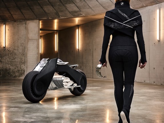 احتفالاً بمرور 100 عام على تأسيسها، كشفت شركة BMW لصناعة السيارات الألمانية عن دراجة جيل المستقبل النارية الأكثر أماناً، والتي تعتمد على نظام (Motorrad Vision Next 100)، الذي يمنح الدراجة ميزة رئيسية وهي الحفاظ على الاتزان تحت أي ظرف دون أن تسقط أرضاً على الإطلاق، لذا من الممكن ركوبها دون الحاجة لارتداء خوذة الأمان.