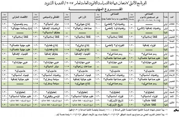 أعلنت وزارة التربية والتعليم اليوم الخميس البرنامج الأولي ( المقترح ) لامتحان شهادة الدراسة الثانوية العامة / الدورة الشتوية للفروع الاكاديمية والمهنية للعام 2017.