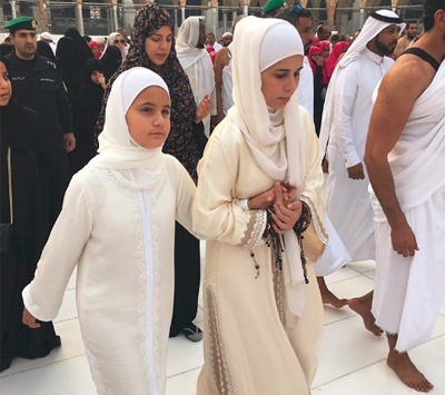 نشرت الاميرة هيا بنت الحسين صورا لها ولابنتها الشيخة الجليلة ، خلال تأديتها لشعائر العمرة .