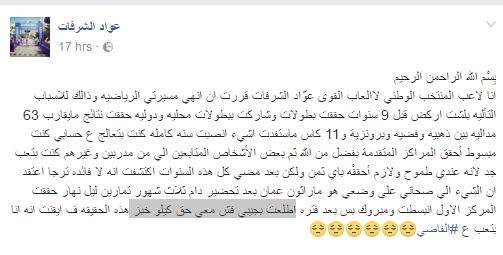 كان قد نشر تصريحا على صفحته على الفيس بوك خلاصته: "اطلعت بجيبي فش معي حق كيلو خبز" حسب قوله.