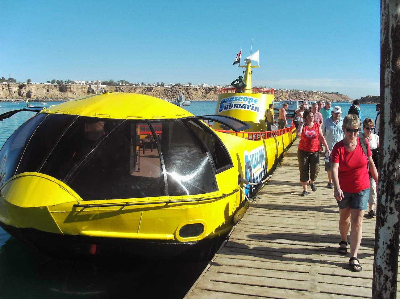 القارب الزجاجى أو الـ Glass Boat : وهى عبارة عن غواصة تحت البحر.. يكون قاعها من زجاج كى تتمكن من رؤية الأسماك والشعب المرجانية الملونة وهى فى القاع تستغرق الرحلة من ساعة إلى 3 ساعات، لها عدةأسماء منها : Sea Scope أو Aquascope أو Submarine والغواصة يوجد منها أشكال وأحجام كثيرة