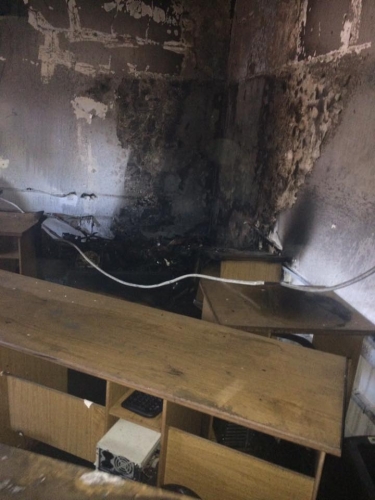 وقال الشهود إن كوادر الدفاع المدني أخمدت الحريق الذي أتى على غرفة الحاسوب، دون تسجيل إصابات بشرية تذكر.