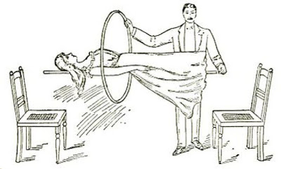 تكمن الخدعة في أن السيدة تنام على قضيب حديدي تخفيه وقفة الساحر والذي يعرف أين بدايته وأين نهايته ويتظاهر أمام الجمهور بأنه يمرر الطوق حول السيدة ليثبت لهم أنها تحلق بالفعل ولا تستند على شئ بينما في الحقيقة هو يحرك الطوقي في المنطقة الفارغة ويبتعد عن مكان القضيب الذي يسندها.