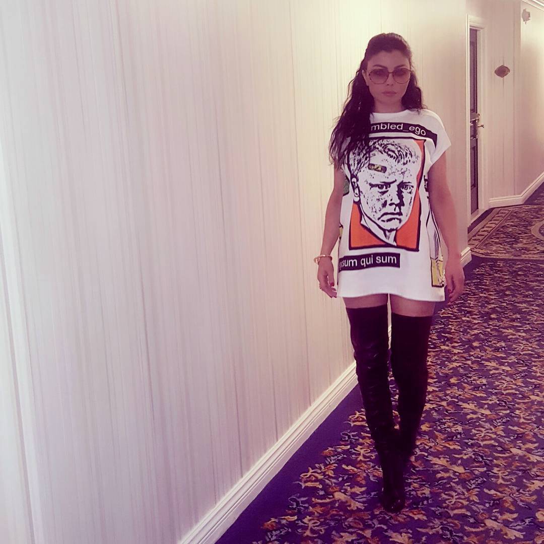 ارتدت وهبي فستاناً قصيراً، وحذاءً من الجلد طويل باللون الأسود.