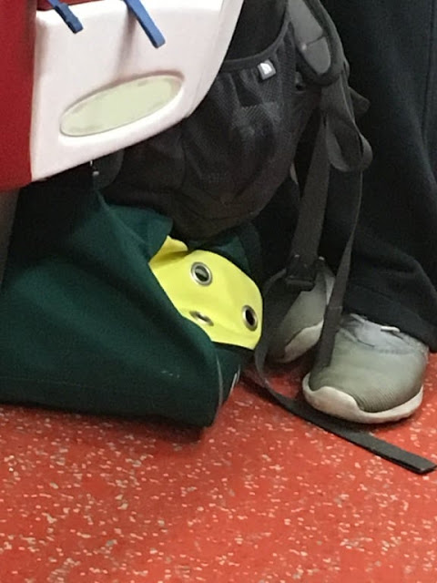 4- ألا تشعر أن القطعة الخضراء بالأسفل تشبه شكلاً كرتونياً مألوفاً لديك؟! حسناً أنا أيضاً أعتقد نفس الشيئ بينما هي في الحقيقة ليست سوى قطعة عادية من ملحقات هذه الحقيبة في الغالب.