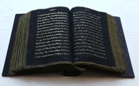 قامت الفنانة الأذربيجانية "تونزالا محمد زاده" بإعداد مصحف كتبته باللون الذهبي على قماش حريري أسود شفاف.