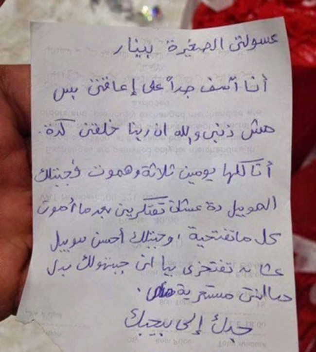 وعندما اشترى الهاتف طلب من الشاب أن يكتب رسالة لحفيدته قائلا فيها: "عسولتي الجميله بينار.. أنا آسف جدا على إعاقتي بس مش ذنبي والله أن ربنا خلقني كدة.. أنا كلها يومين ثلاثة وهموت فجبتلك الموبيل ده عشان تفتكريني بعد ما أموت كل ماتفتحيه.. وجبتلك أحسن موبايل عشان تفتخري بيا بدل مانتي مستعره مني.. جدك اللي بيحبك "محمد سعيد".