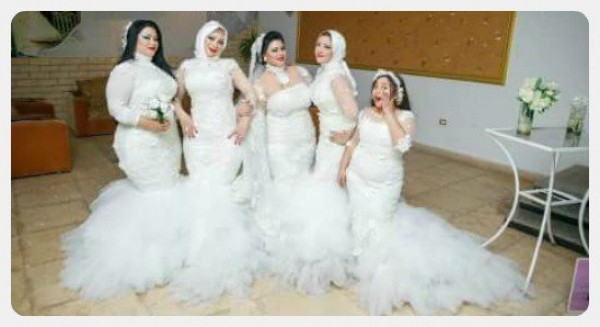'ماحدش يلبس أبيض عشان ما ياكلش الجو من العروسة' القاعدة الأولى التى يجب ألا تحيد عنها أى فتاة تحل ضيفة على أى حفل زفاف وإلا يشكك الجميع فى نواياها وفى أنها تريد أن تنافس العروس وتخطف منها الأنظار، ولكنها القاعدة نفسها التى تجاهلتها تمامًا 'إسراء' وشقيقاتها الثلاث حيث لم يكتفين بارتداء اللون نفسه وإنما قررن ارتداء فستان عروس مشابه تمامًا لفستانها، ليصبح الحفل به 4 عرائس وعريس واحد فقط.