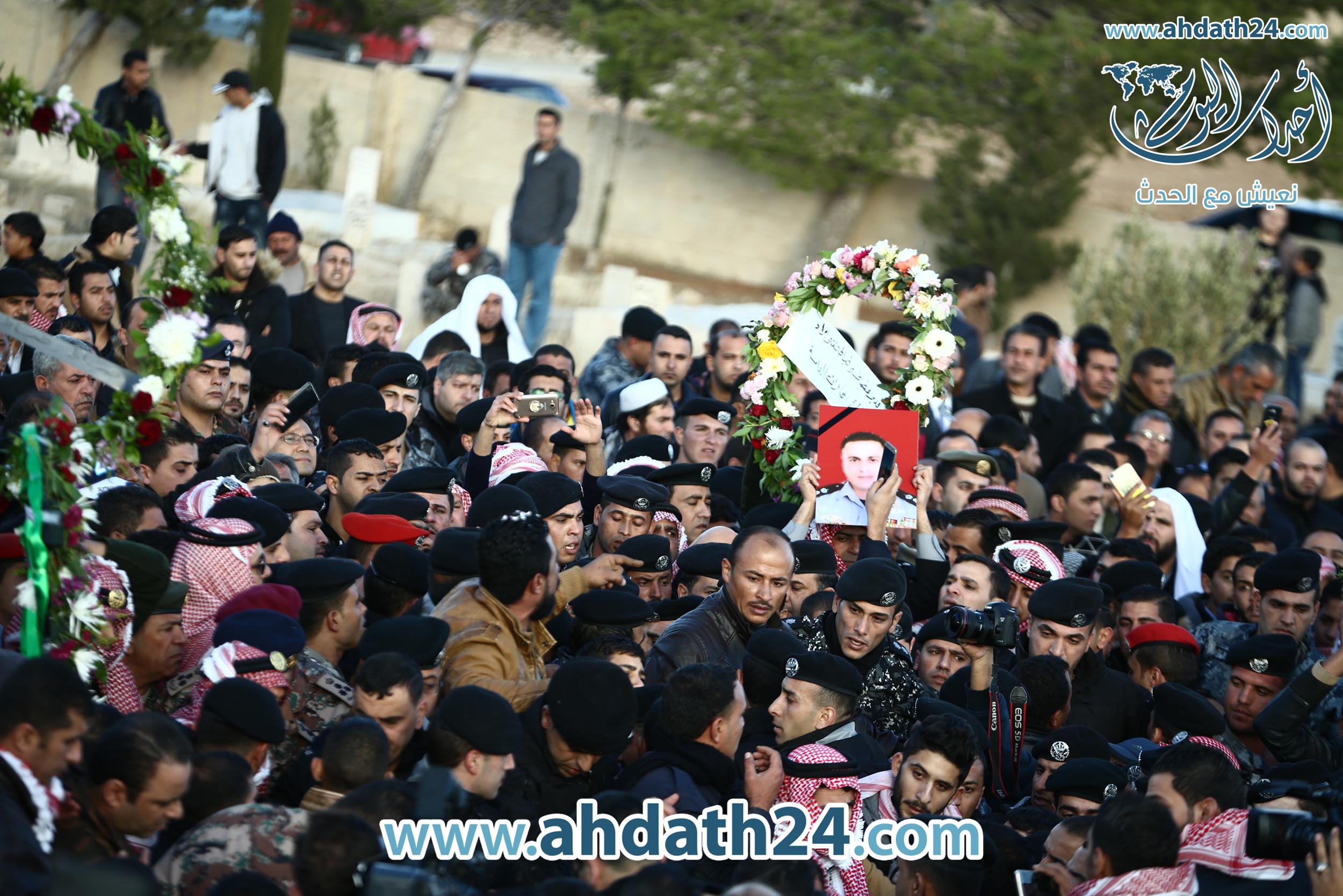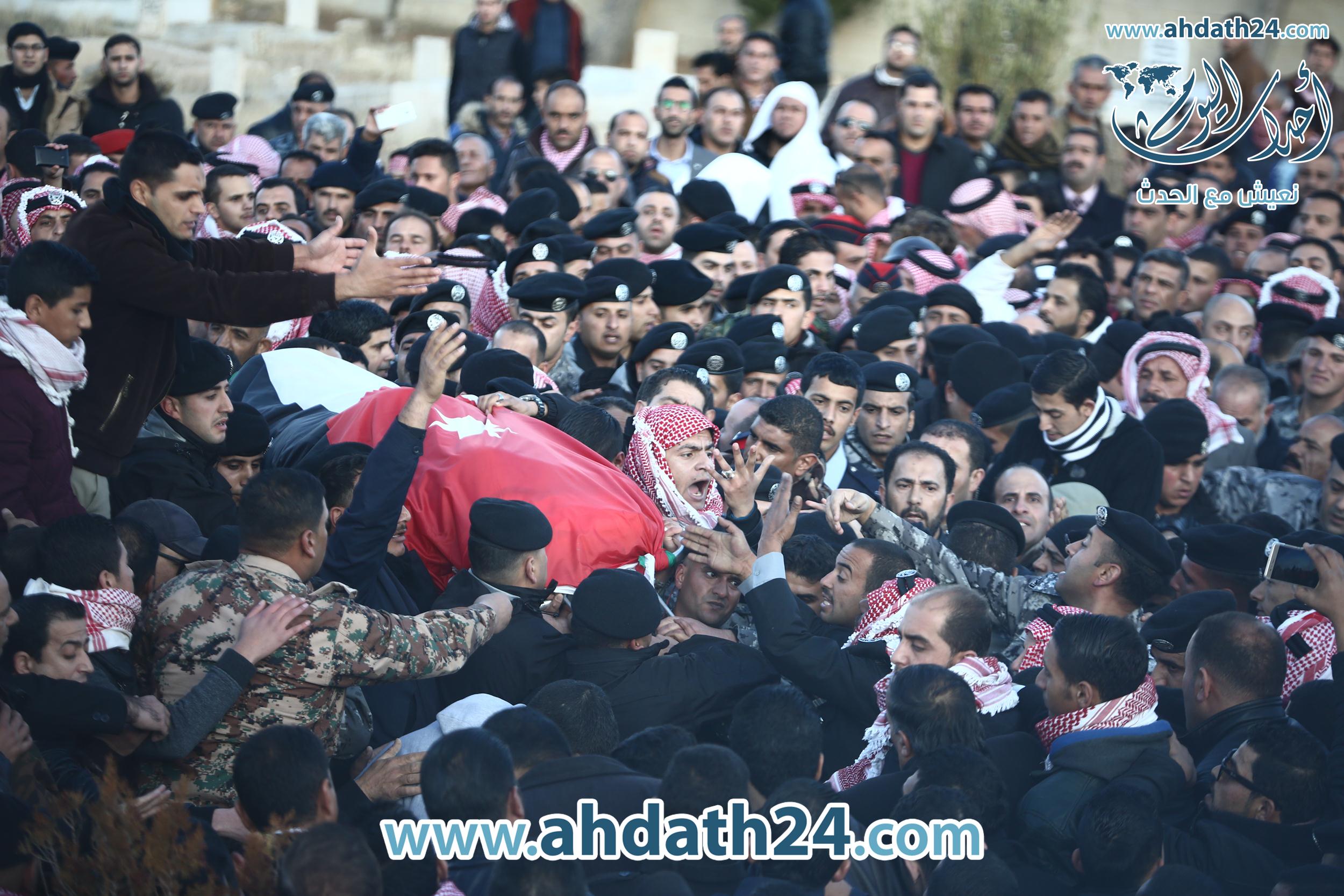 وفي موكب جنائزي ومراسم عسكرية مهيبة وسط الآلاف من أبناء الأسرة الأردنية الواحدة المشاركين في تشيعه ووسط هتافات المشاركين بالتشييع للوطن والشهيد، اصطفت ثلة من ضباط وأفراد قوات الدرك وعزفت لحن الرجوع الأخير وأطلق زملاء الشهيد رصاصات تحية له، فيما حمل الجثمان الطاهر على أكتاف النشامى من زملاء الشهيد.