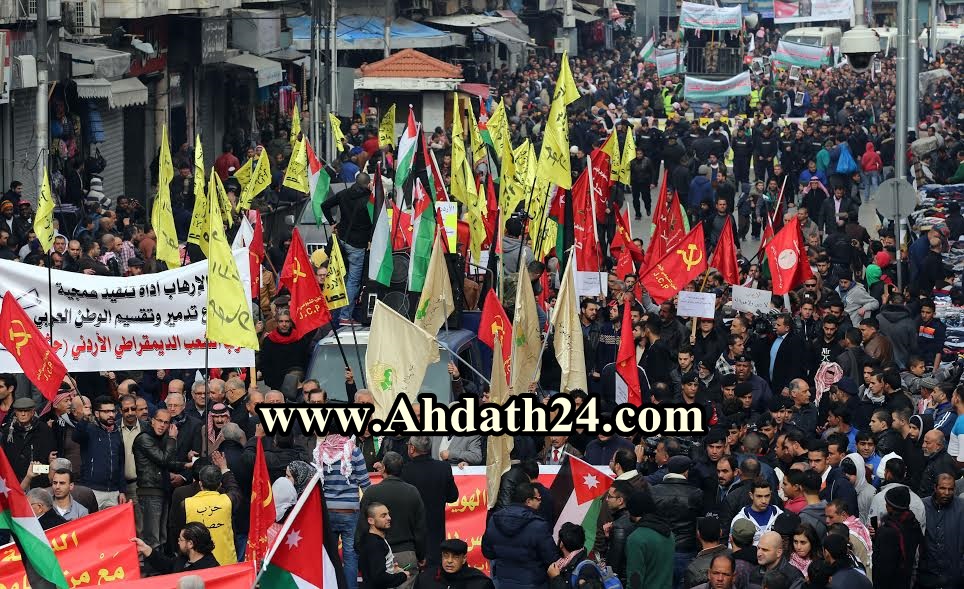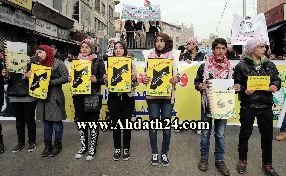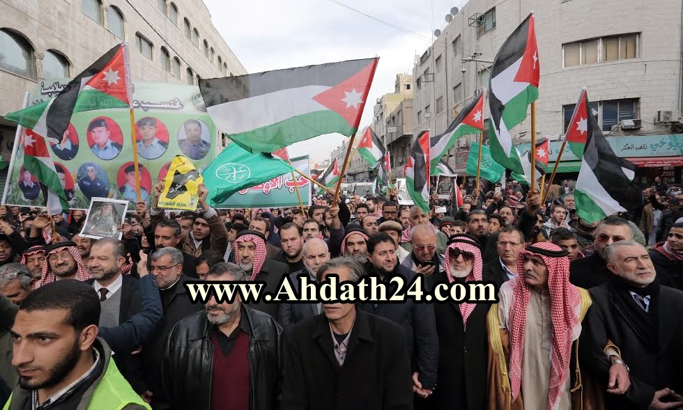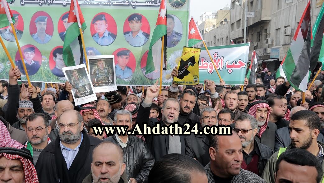 شارك آلاف الحزبيين والمستقلين بالمسيرة التي انطلقت بعد صلاة ظهر الجمعة من أمام المسجد الحسيني في منطقة وسط البلد بالعاصمة عمان، تنديدا بالجريمة التي ارتكبها ارهابيون في محافظة الكرك وراح ضحيتها 14 شهيدا ، ودعما للأجهزة الأمنية.