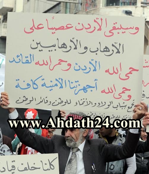 وهتف المشاركون بعبارات تفيد ان الأجهزة الأمنية قادرة على التصدي لكلّ ارهابي تسوّل له نفسه الاعتداء على المواطنين الاردنيين ويهددون أمن البلاد.