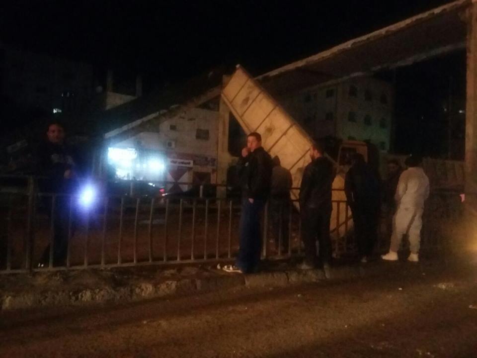 تسبب اصطدام ونش الى انهيار جزئي لجسر مشاة 'اسمنتي' في ام نوارة ، وعلى الفور تحركت الاجهزة الامنية الى موقع الحادث.