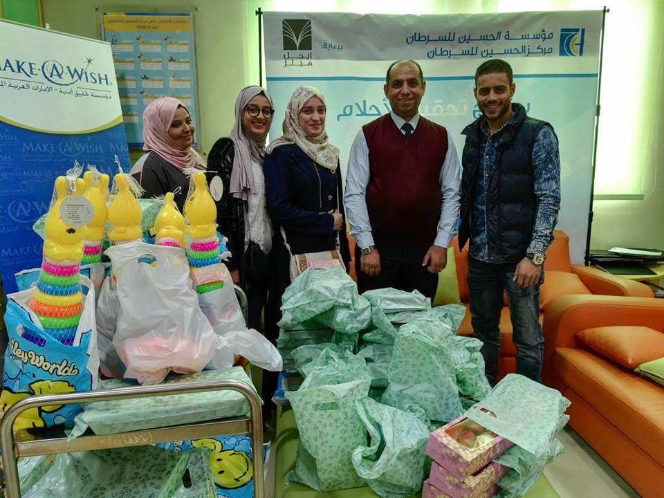 وفي وقت سابق قامت مجموعة من طلبة قسم الكيمياء بزيارة إلى أطفال مركز الحسين للسرطان، وقدموا الهدايا لأكثر من ستين طفلا دون سن الثانية عشر.