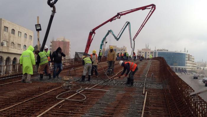 أنجزت أمانة عمان صب المرحلة الأولى من جسر تقاطع الدوريات الخارجية بحجم 900 متر مكعب والذي يجري العمل به حاليا ضمن الاعمال الانشائية لمشروع الباص السريع، وتشمل انشاء جسر بمسربين يربط شارع الملكة رانيا العبد الله من جهة صويلح مع شارع ياجوز بطول 650 مترا.