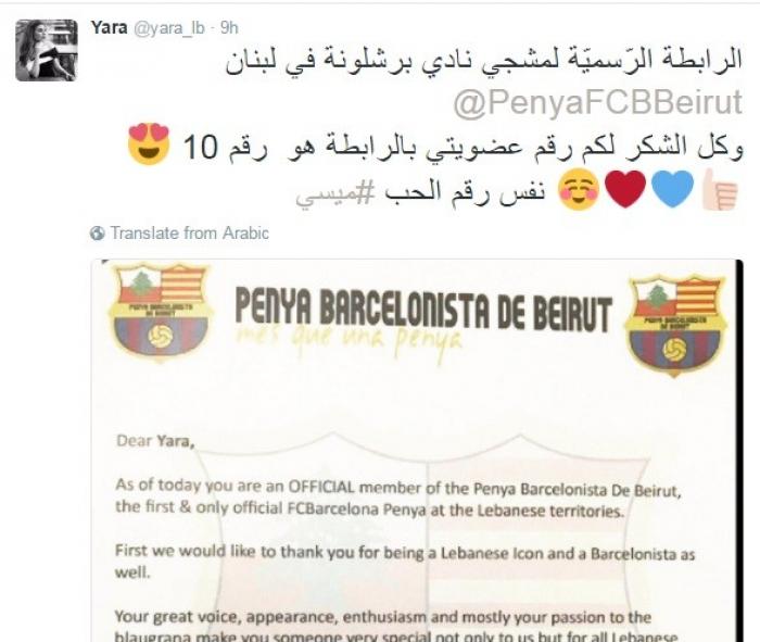 يارا أعربت عن سعادتها الكبيرة بالإنضمام للرابطة حيث نشرت صورة الإنتساب أرفقتها بتعليق: "الرابطة الرّسميّة لمشجي نادي برشلونة في لبنان وكل الشكر لكم رقم عضويتي بالرابطة هو رقم 10 نفس رقم الحب ميسي".