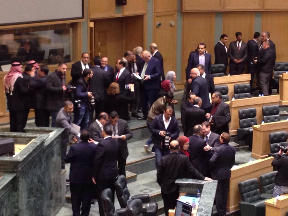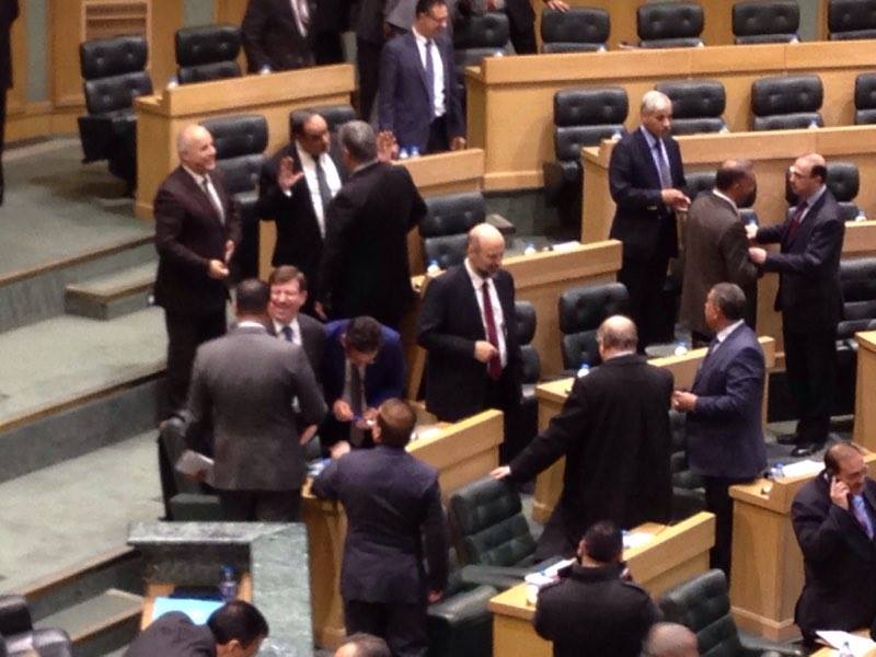 بدأ أعضاء مجلس النواب جلستهم المسائية المقرر أن يناقشوا خلالها مشروع قانون الموازنة العام للعام 2017، بمصافحة الوزراء الجديد الذين حلوا بدل آخرين قبلت استقالتهم الأحد، بإرادة ملكية.